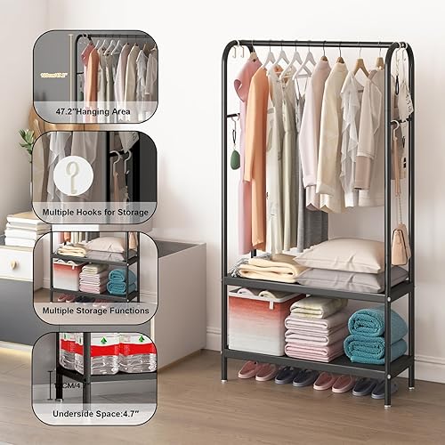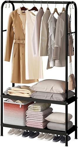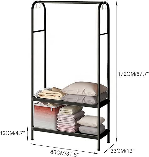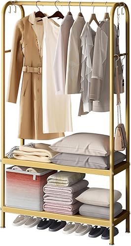 Zstar Porte-vêtements en métal à suspendre les vêtements - Sur pied avec 2 étagères à 2 niveaux - 6 crochets - Pour magasin, chambre à coucher, dressing - 80 x 33 x 172 cm - Doré