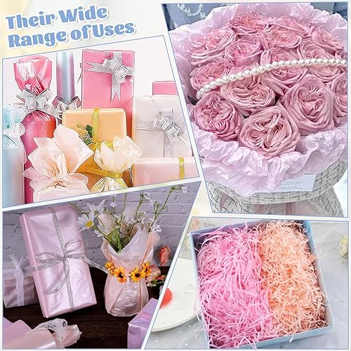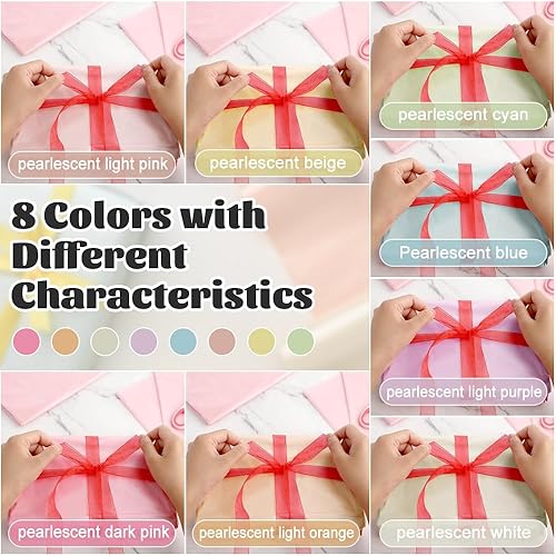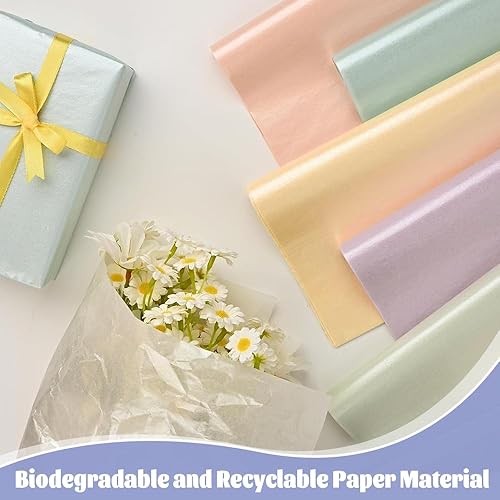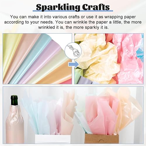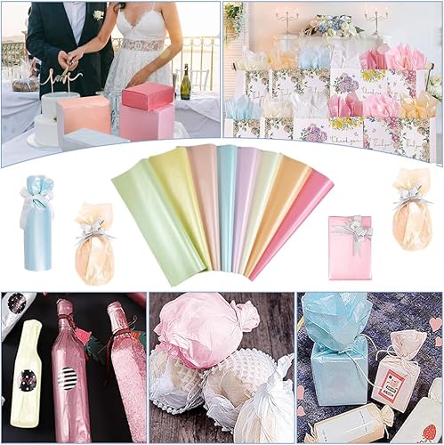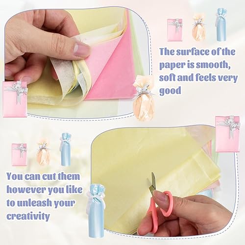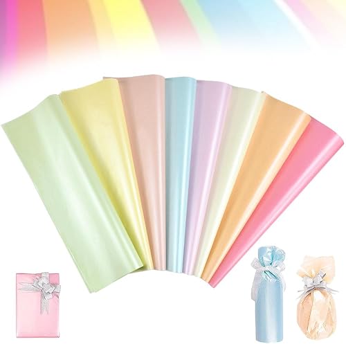 CAREDGO 160 Feuilles Papier de Soie, 30x21cm Papier D'emballage Cadeau, 8 Couleurs Papier de Soie D'emballage, Papier de Soie Coloré Sacs Cadeaux pour Emballage Cadeau Pompons Artisanat Bricolage