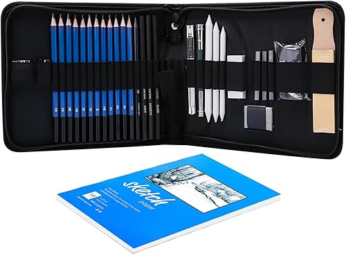 Teogneot 33 Pièces Professional Dessin Esquisses Crayons Kit Set Art Fournitures Art Outils de Peinture et Kit Sac Graphite Charbon De Crayons Ensemble