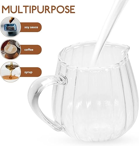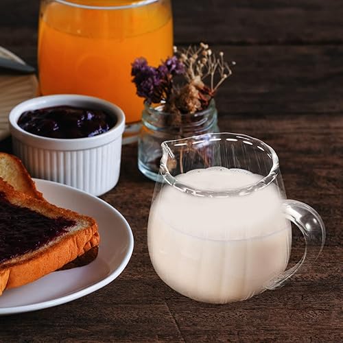 Garneck Mini Pichet en Verre Transparent 100 Ml Crémier en Verre Petit Verseur de Lait Pichet Cafetière Tasse à Sauce Sirop D'érable Carafe de Service avec Bec Verseur