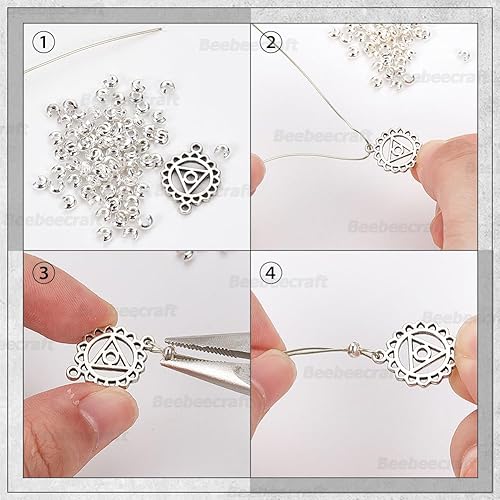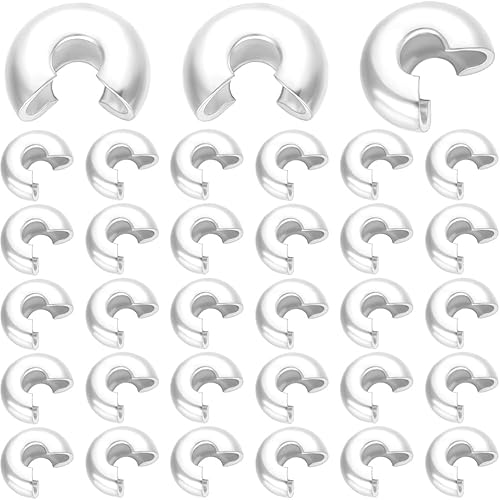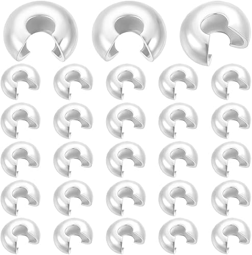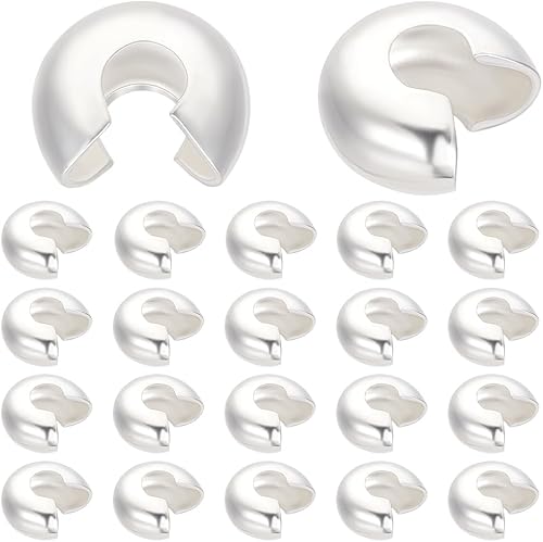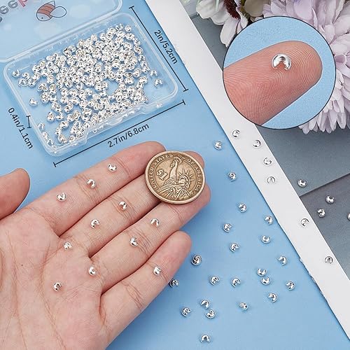 Beebeecraft 1 boîte de 100 cache Perles à Sertir en Argent Sterling 925 cache Nœuds à Sertir Demi Ronds Ouverts Plaqués en Argent Sterling Petites Perles D'Espacement pour la Fabrication de Bijoux