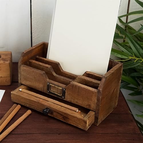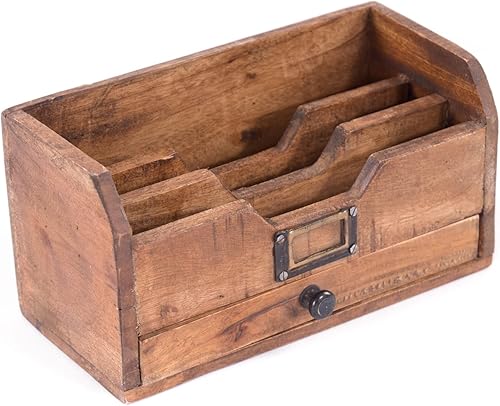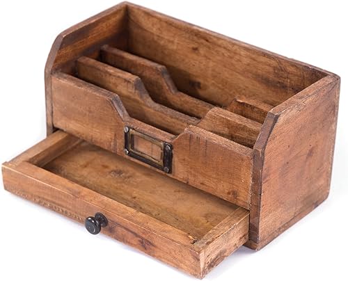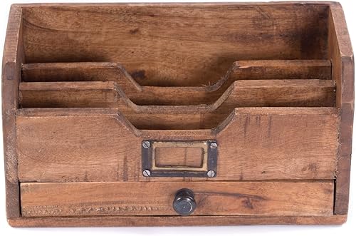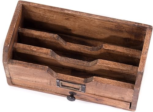 DESIGN DELIGHTS Portefeuille Juna | Bois dacajou, 3 Compartiments avec tiroir, 25 cm | Porte-Lettres, Organisateur de Bureau, Porte-Lettres, Porte-Documents