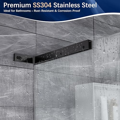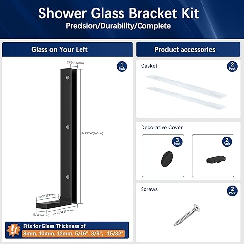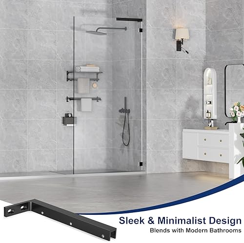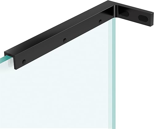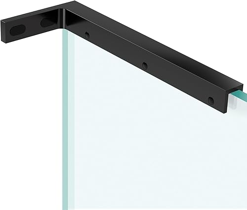 LukLoy Support en verre fixe, barre de support de douche murale sur verre, support de montage en forme de L pour panneaux de douche de 8 à 12 mm (noir, verre à droite)