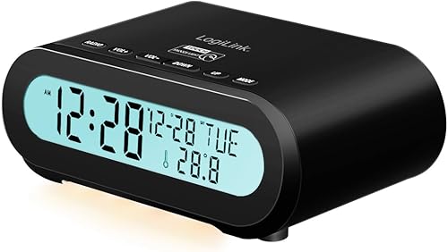 Logilink SC0121W Radio-réveil avec Affichage de la température, minuterie d'endormissement, avec Port USB pour recharger par Exemple téléphone Portable/Tablette/liseuse
