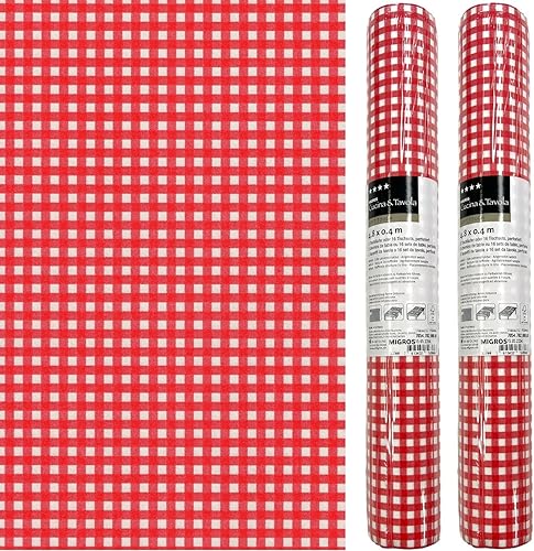 Rouleau de chemin de table et sets de table Airlaid 3-en-1 - Vichy rouge/blanc à carreaux - 40 x 480 cm - 2 pièces