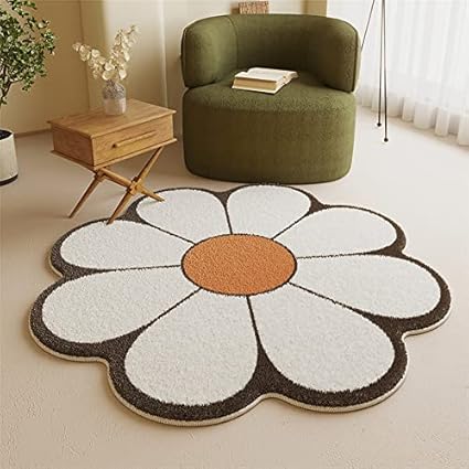 Morbuy Tapis Fleurs Doux Moelleux pour Chambre d'enfant, Tapis Shaggy en Forme de Pétale, Antidérapant Rond Tapis de Décoration Nordique pour Chambre à Coucher, Salon (120cm,Rouge)