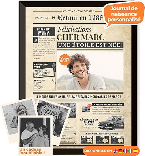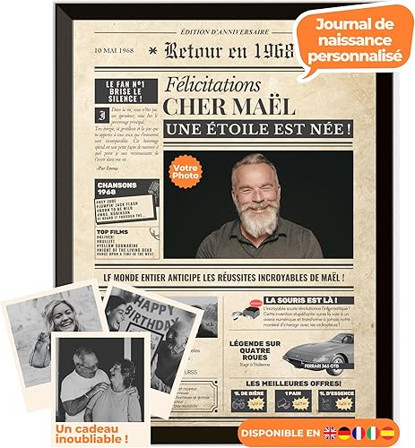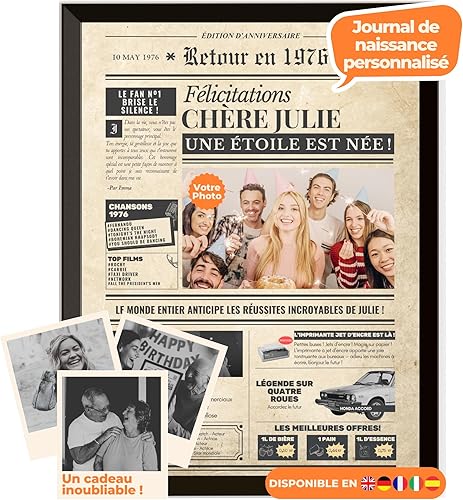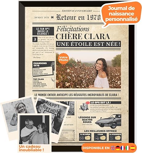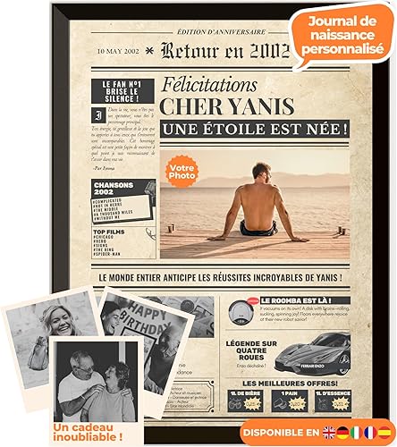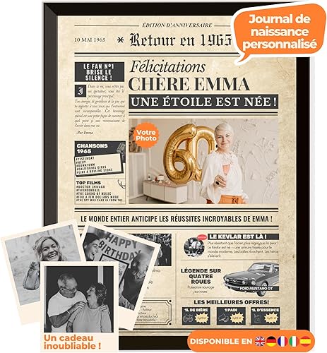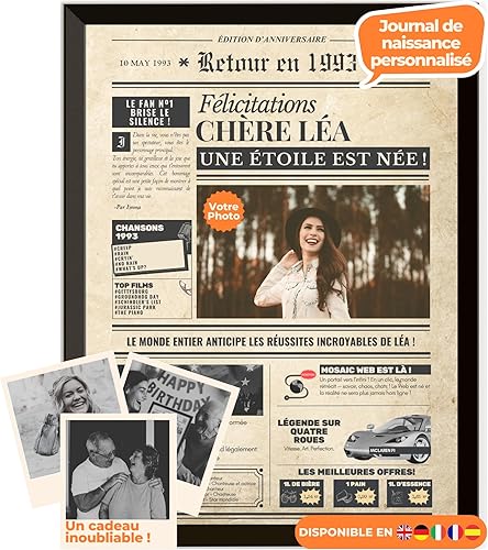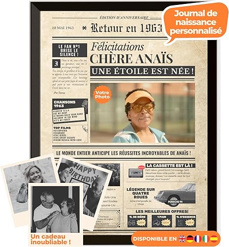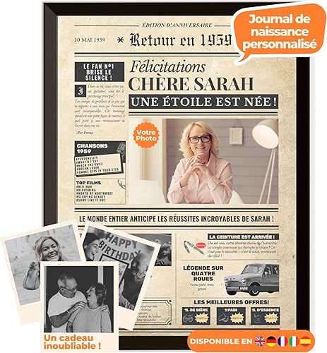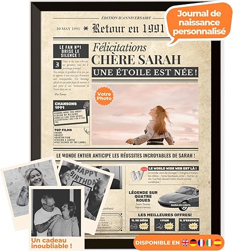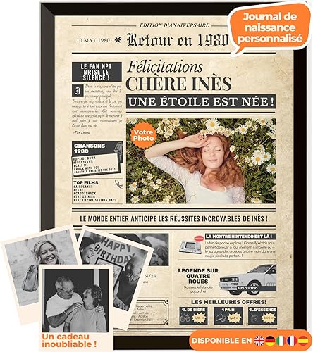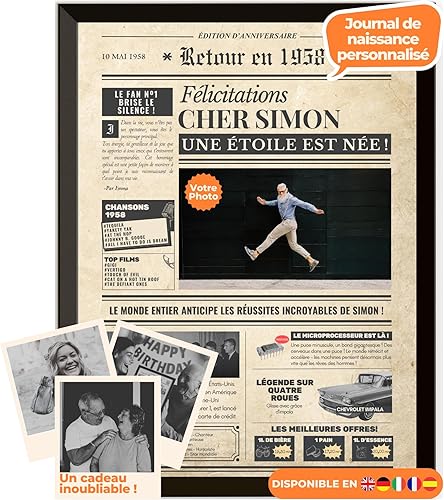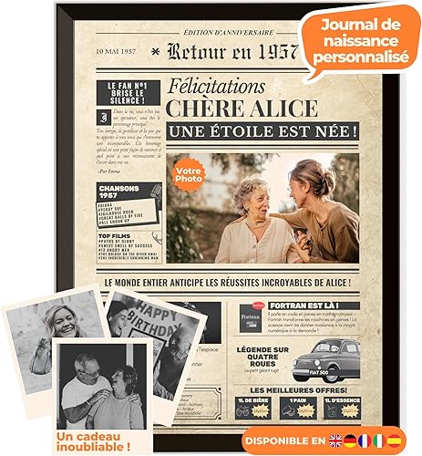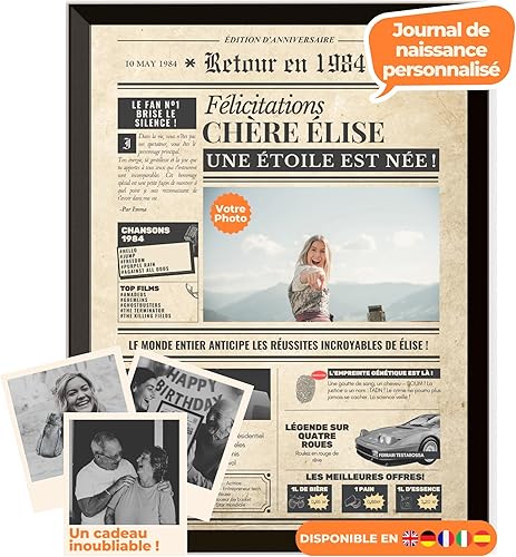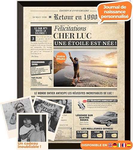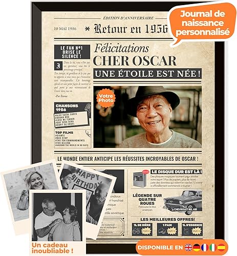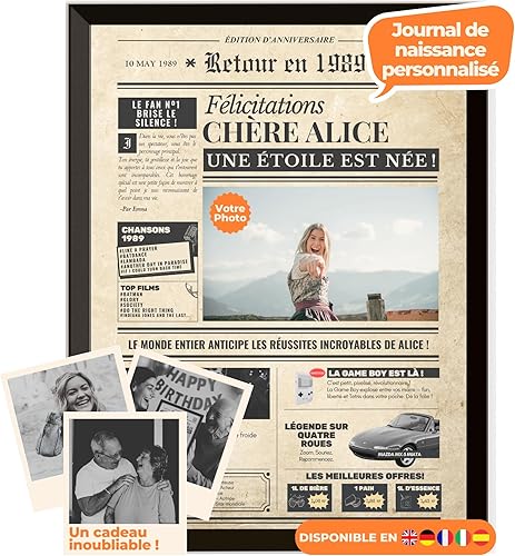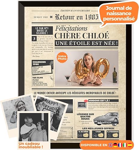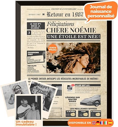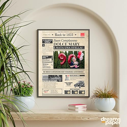 Journal d’anniversaire 1935 – affiche personnalisée avec photo, nom et message – cadeau original 90 ans homme femme – style vintage avec cadre en option – affiche rétro souvenir inoubliable