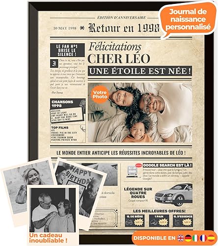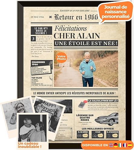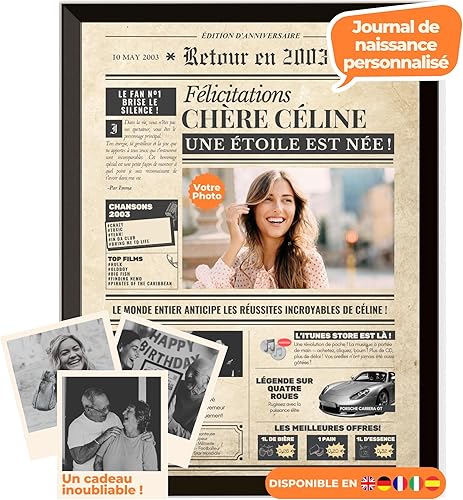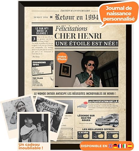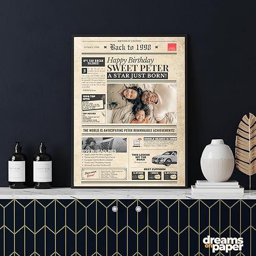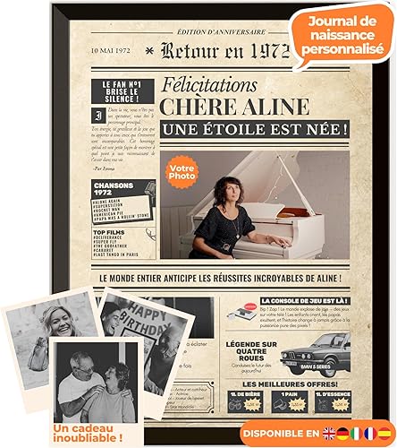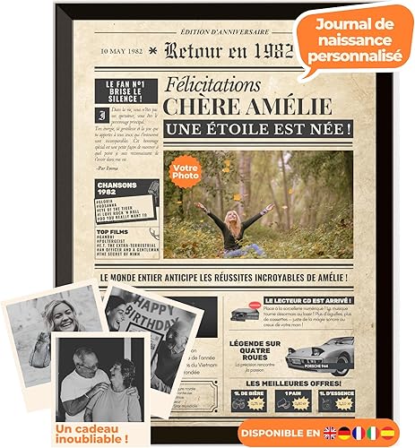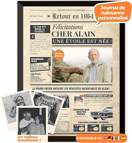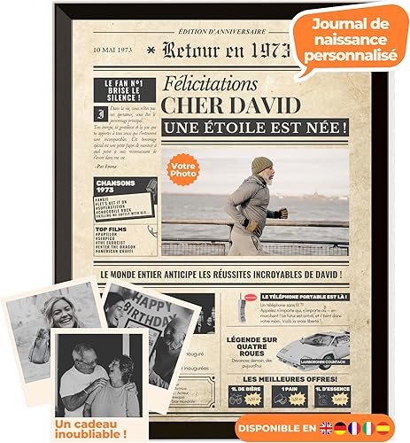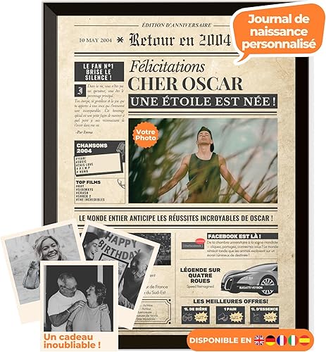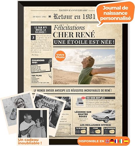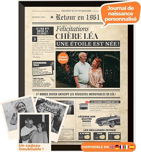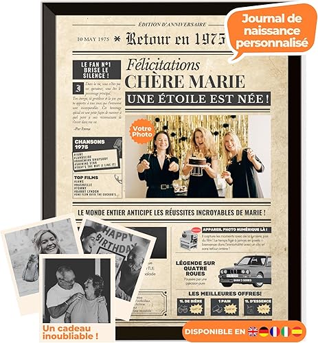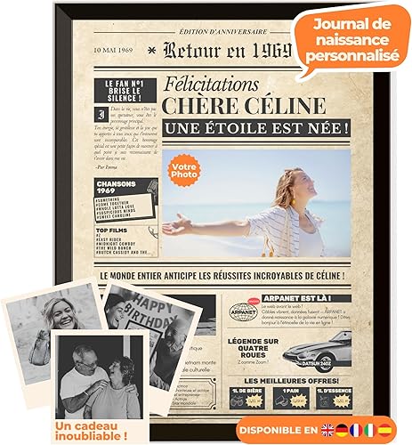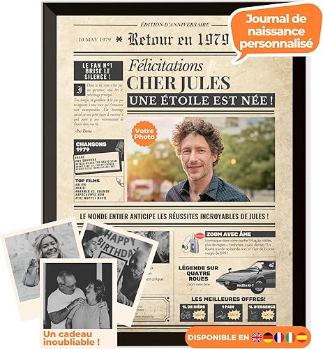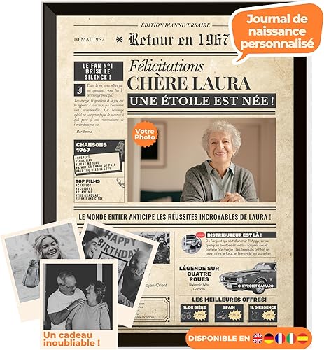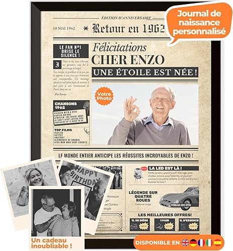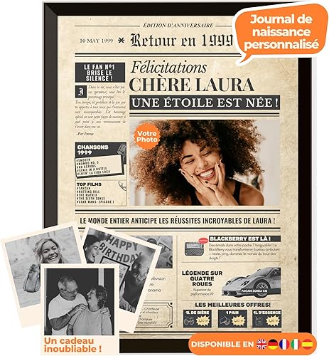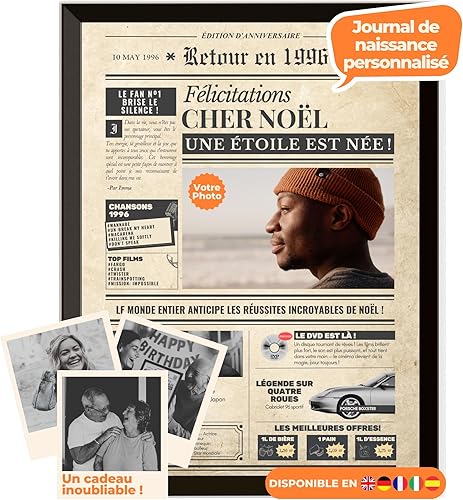 Journal d’anniversaire 1935 – affiche personnalisée avec photo, nom et message – cadeau original 90 ans homme femme – style vintage avec cadre en option – affiche rétro souvenir inoubliable