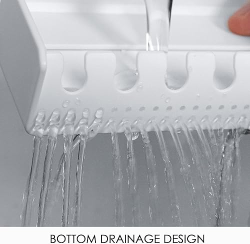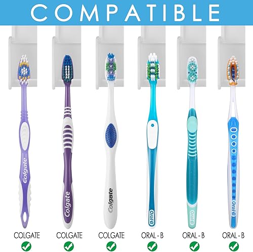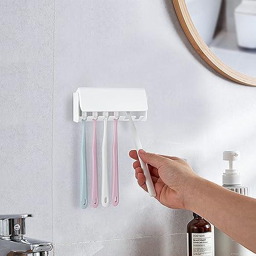 ADORILA Porte-brosse à dents mural avec couvercle, 6 emplacements auto-adhésifs pour brosse à dents, support de rangement pour salle de bain, douche, camping-car, camping-car