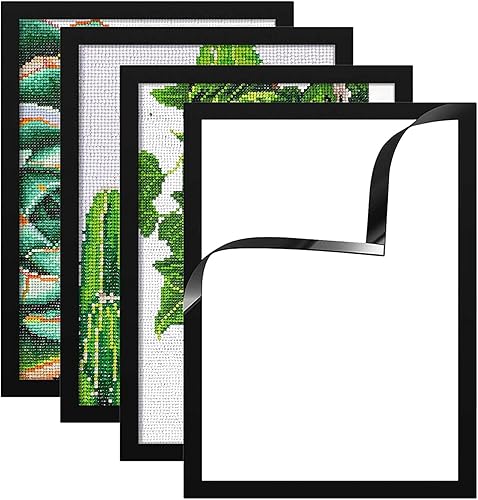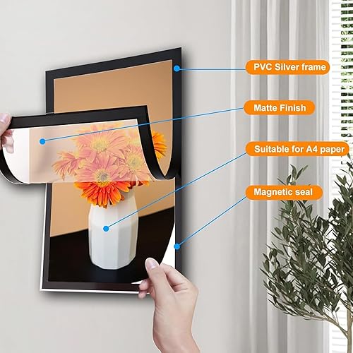 4 Pièces Cadre Magnétique Auto-Adhésif, Cadre d'Affichage Magnétique, Cadre Photo Magnétique A4, Diamond Painting Cadre, Cadre Magnétique, pour Signe, Licence, Photos, Document - Noir, 32,5 x 24 cm