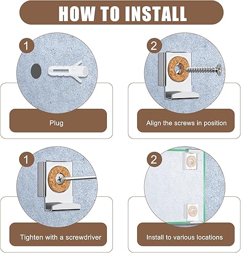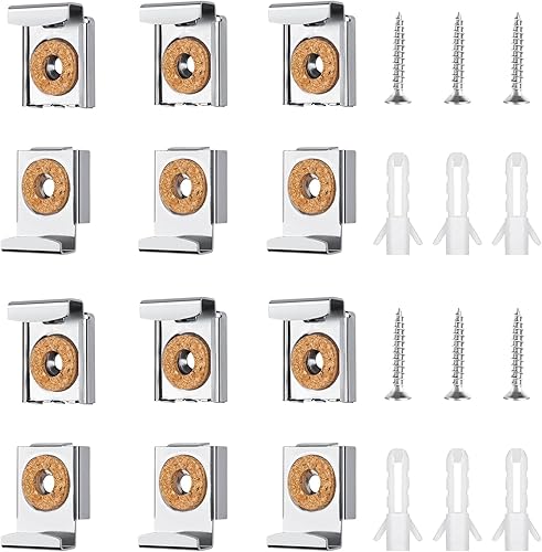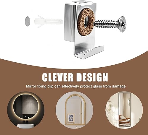 Pince De Miroir De Fixation A Miroir, 12 pièces Support Mural Miroir De Fixation Support Réglable Miroir à Ressort Clips de Miroir,Clips de Suspension à Ressort en Métal avec Vis et Chevilles