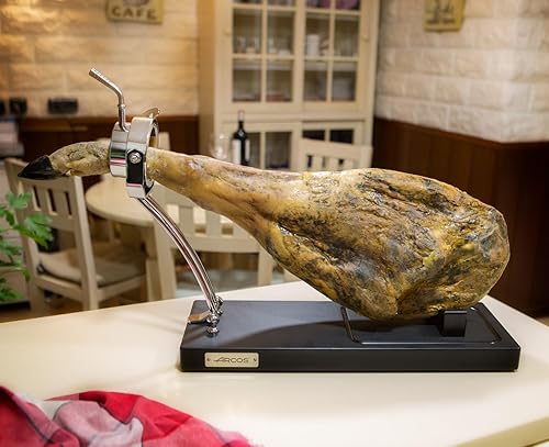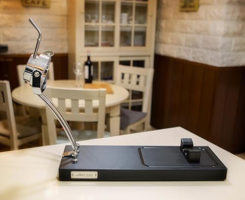 Arcos Support à Jambon Rotatif Professionnel en Acier Inoxydable. Support à Jambon Basculant avec Ferrures en Acier. Base de Coupe de Jambon pour Grandes Pièces. Couleur Argent et Noir.