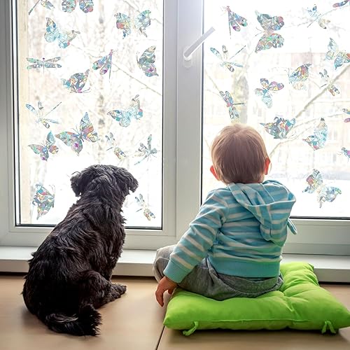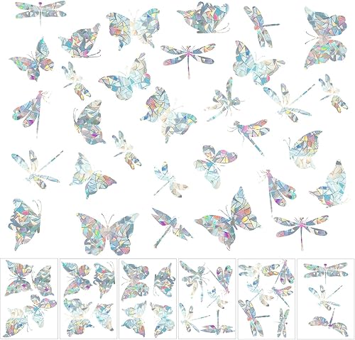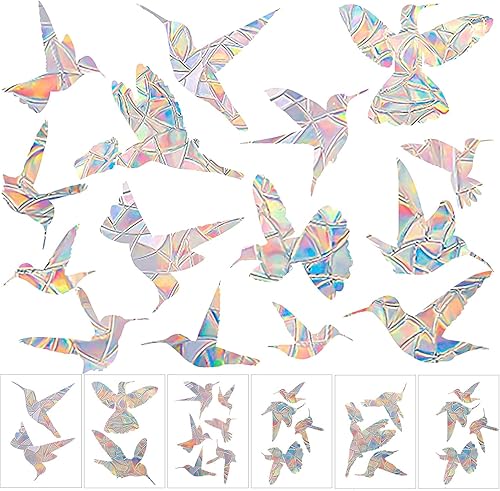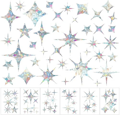 6 Feuilles d'Autocollants Anti-Collision pour Fenêtre, Autocollants de Fenêtre à Réflexion Arc-En-Ciel pour Prévenir Les Impacts d'Oiseaux (Étoile)