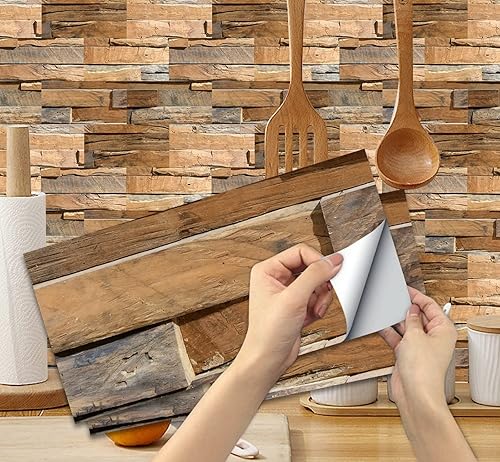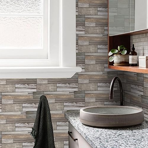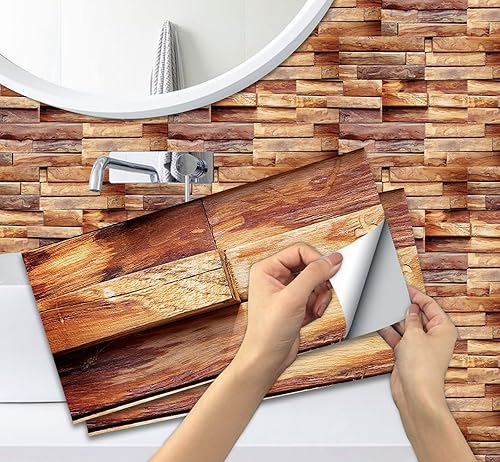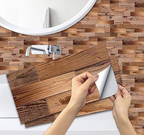 A.Monamour Stickers Carrelage Autocollants 3D Imitation Bois Effet Bois Imperméable Carrelage Adhésif PVC Décoration Murale pour Crédence de Cuisine Salle de Bain 15cmx30cm