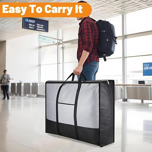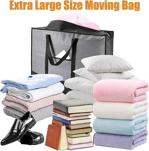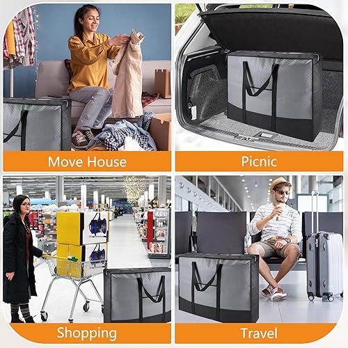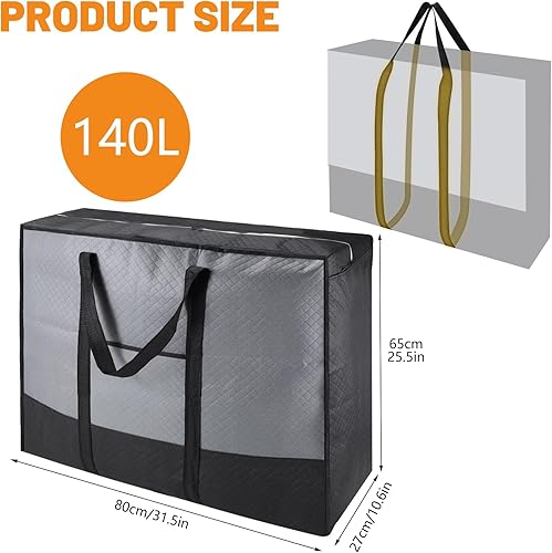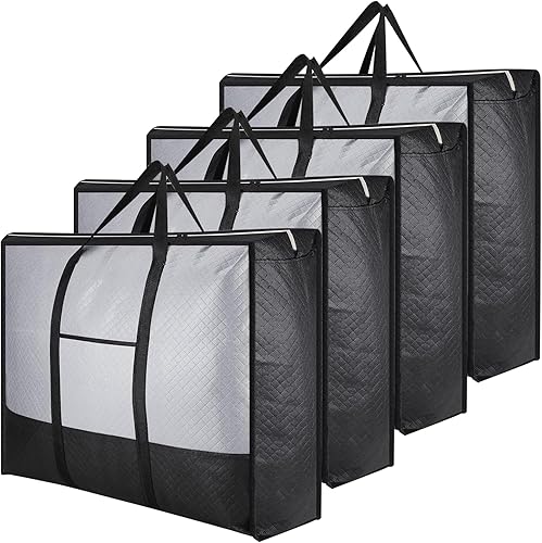 SUNNOW Lot de 4 grands sacs de déménagement de 140 L avec fermeture éclair pour déménagement - Sac de rangement extra large avec couvercle pour vêtements, literie, couettes, couvertures, sacs de