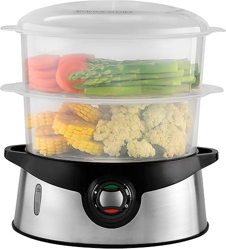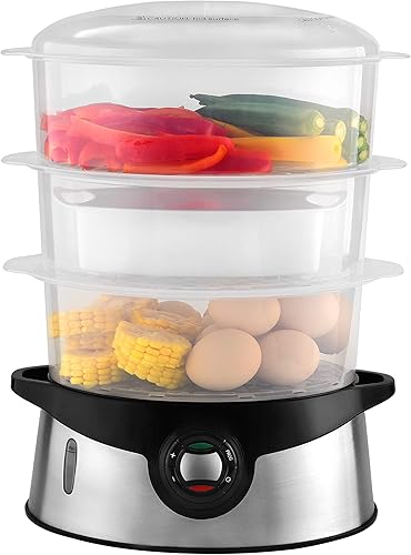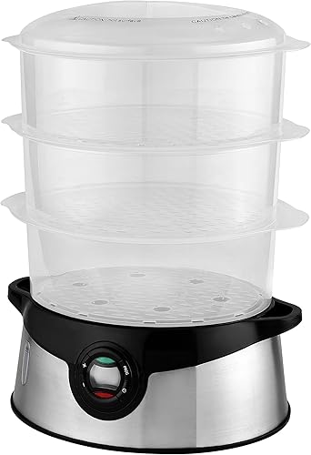 Venga! Cuiseur Vapeur électrique 9 Litres, avec Panier Cuiseur de Riz, 3 Etages, Programmateur sur 24 heures & Minuteur de 90 minutes, 800 W, Noir/Argenté, VG DG 3000