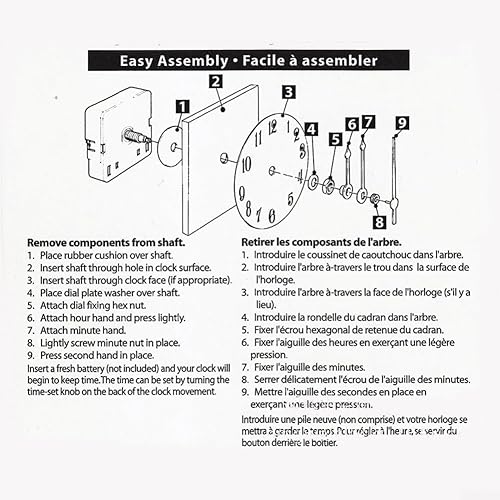 Mécanisme d'horloge à quartz - Remplacement DIY pour horloges murales - Tige à couple élevé (noir)
