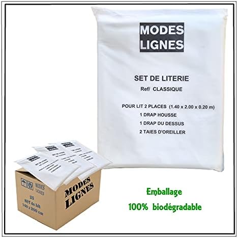 Modes Lignes - Lot de 25 Sets de Draps Jetables résistants 2 Personnes en 140