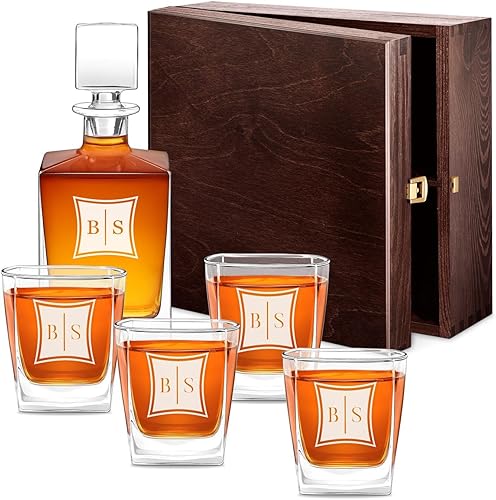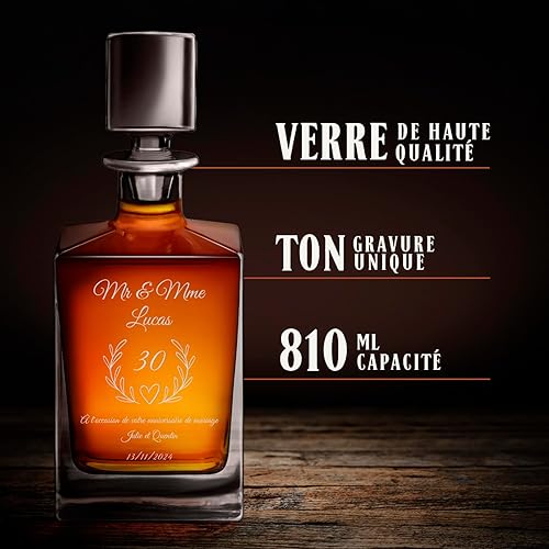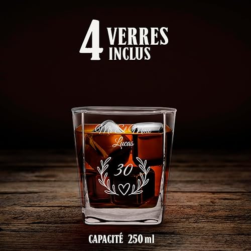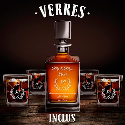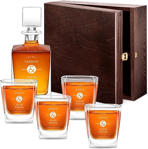 Maverton Set de 4 Verres et Carafe Whisky personnalisés - Ensemble gravé pour Couple - Set Whisky pour Amis - Cadeau Couple - Saint Valentin - Anniversaire Mariage - Mariage