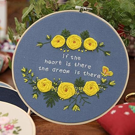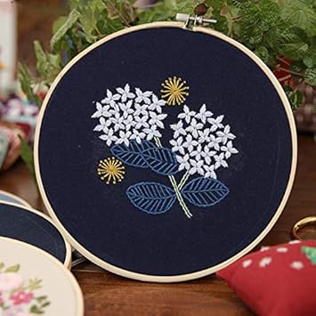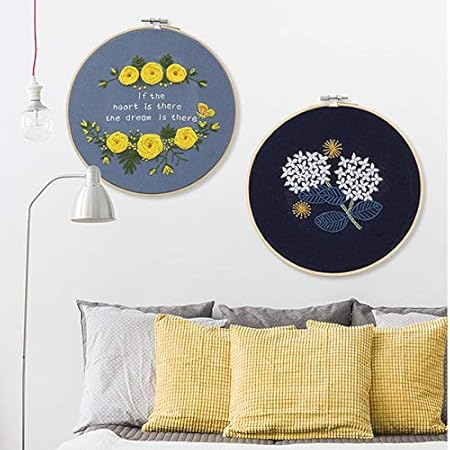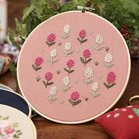 TopHomer Gamme complète de kits de broderie avec motifs, comprend des vêtements à broder avec motif floral, des cerceaux à broder en bambou, des fils de couleur et des aiguilles (type D)