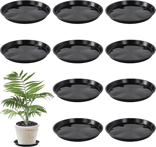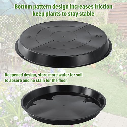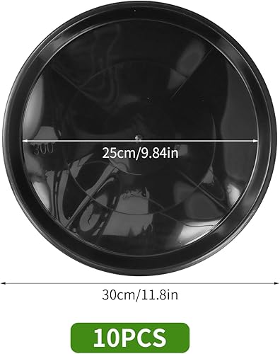 Lot de 10 Ronds Dessous de Verre, 30 cm Noir Soucoupes de Pot de Fleurs en Plastique pour Plantes, Dessous de Verre avec étiquette pour Pots pour Un Usage Extérieur ou Intérieur
