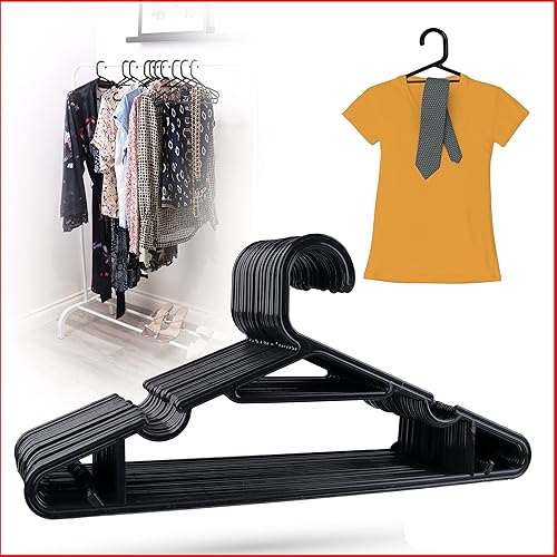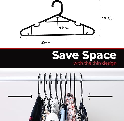 DIVCHI Lot de 25/50 cintres en plastique pour adulte avec barre de pantalon et lèvres – Dimensions : 39 cm de large et 18,5 cm de haut (lot de 25)