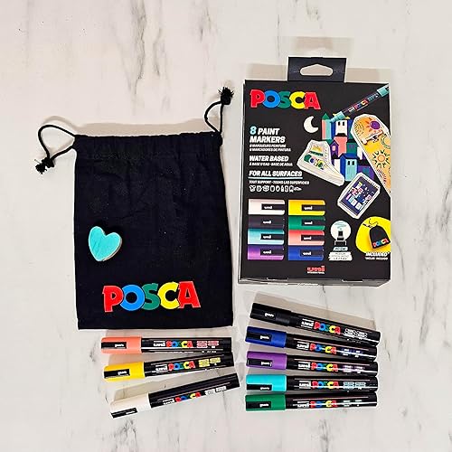 POSCA - Uni Mitsubishi Pencil - Mallette 40 Marqueurs Pointes Extra-Fines PC1MC / Fines PC3M / Moyennes PC5M / Biseautées PC8K - Marqueurs Peinture à Base d'Eau - Tout Support
