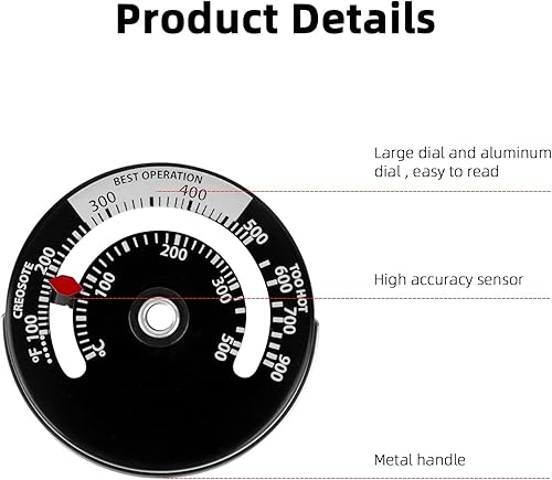 XCDMJ Thermomètre magnétique pour poêle à bois, thermomètre magnétique pour poêle à bois, thermomètre de poêle à feu