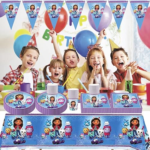 GB THEM PARTY Vaisselle 66 pièces pour fête d'anniversaire, comprend une bannière, des assiettes en papier, des tasses, des serviettes, une nappe