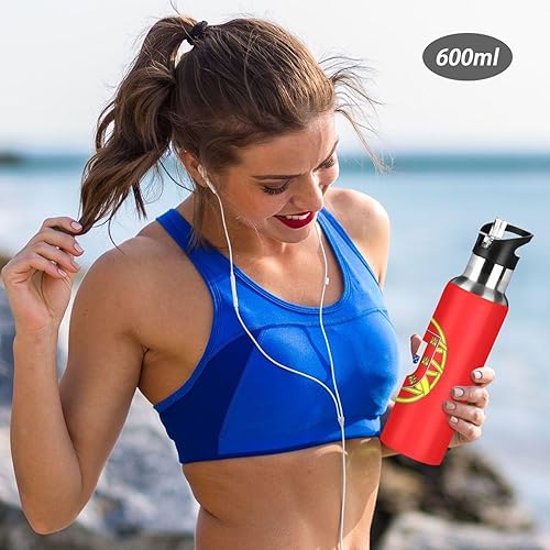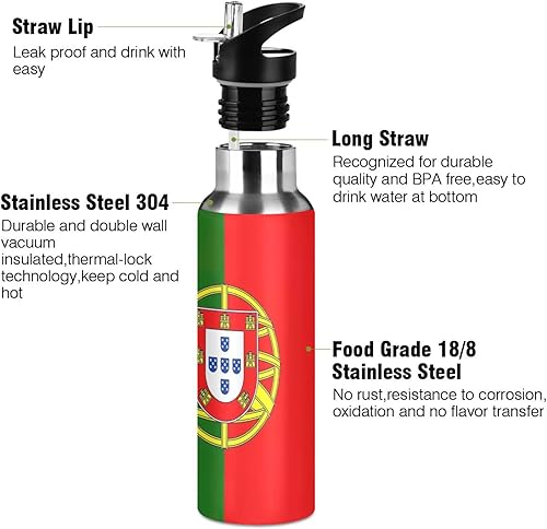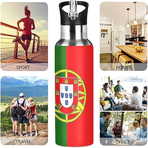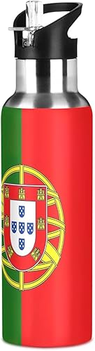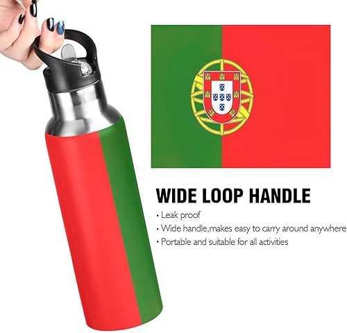 Bouteille d'eau isotherme de 591 ml, sans BPA, bouteille d'eau de sport isolée pour salle de sport, extérieur, voyage, école, drapeau du Portugal