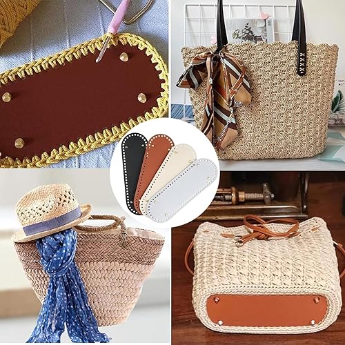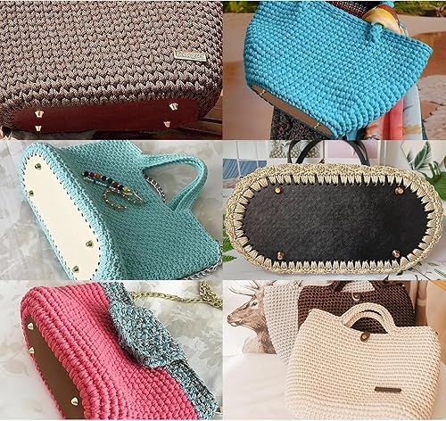 Zhenghebuy 4 Pièces Fond de Sac à Crocheter en Cuir PU,Ovale Crochet Sac Base de Coussin pour Sac au Crochet Sac à Tricoter Sac à Bandoulière Accessoires de Bricolage