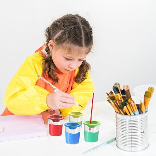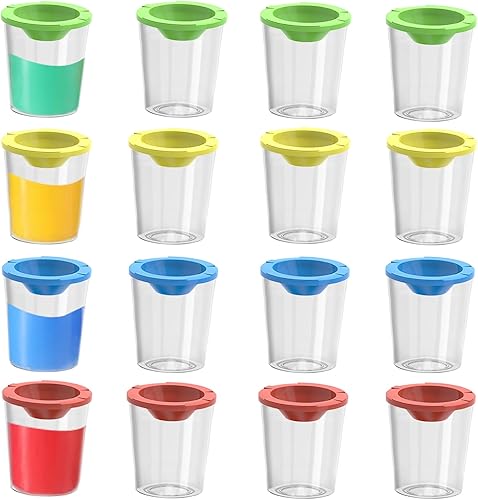 JINGHANGER 16 pièces Gobelets de peinture anti-déversement avec couvercles Pots de Peinture en Plastique Anti-fuites Tasses à peinture pour la peinture, l'école 4 couleurs