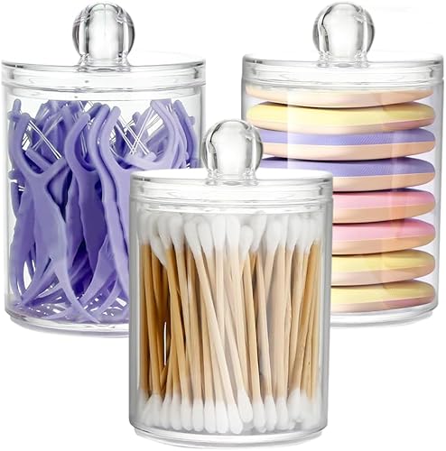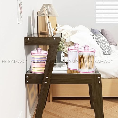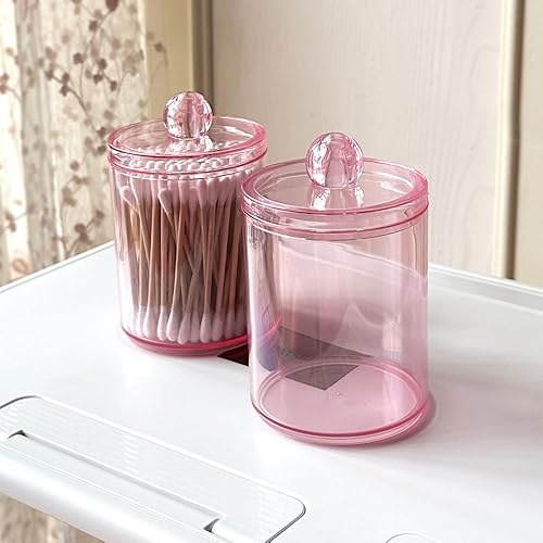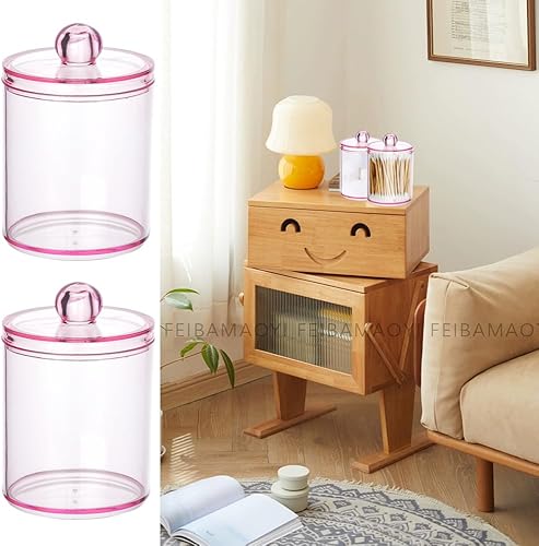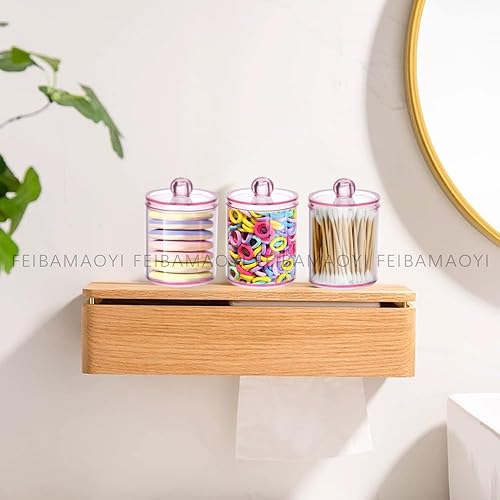 FEIBAMAOYI Porte-tampons en coton, porte-cotons-tiges, 3 pièces, boîtes transparentes pour cosmétiques avec couvercle, pour stocker du coton, tampons en coton, tampons démaquillants (pink)