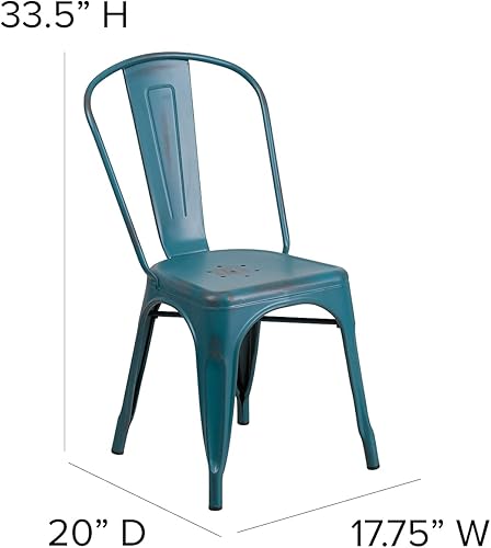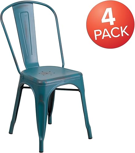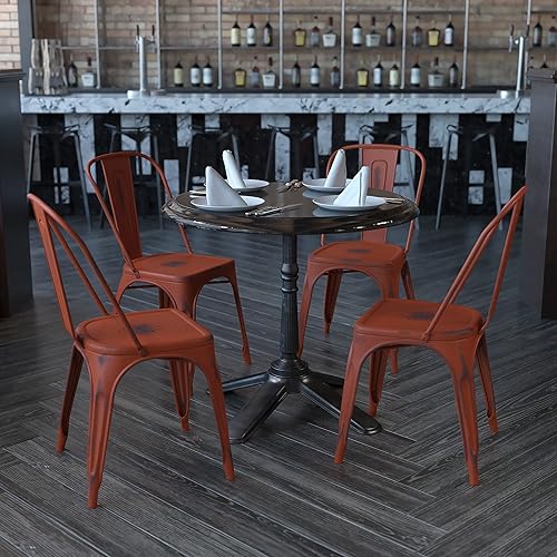 Flash Furniture Chaise en métal Vieilli, Kelly Red, Lot de 4