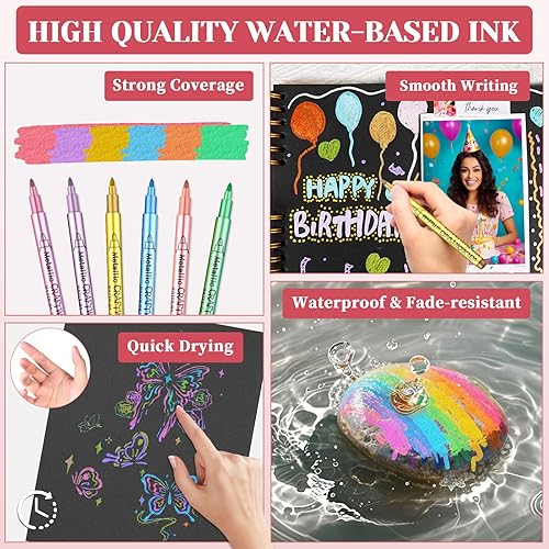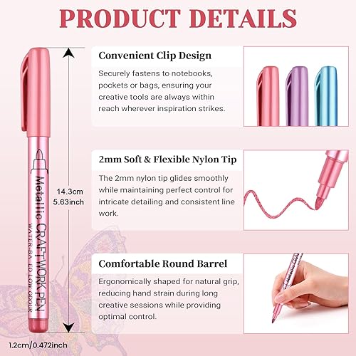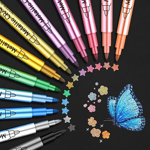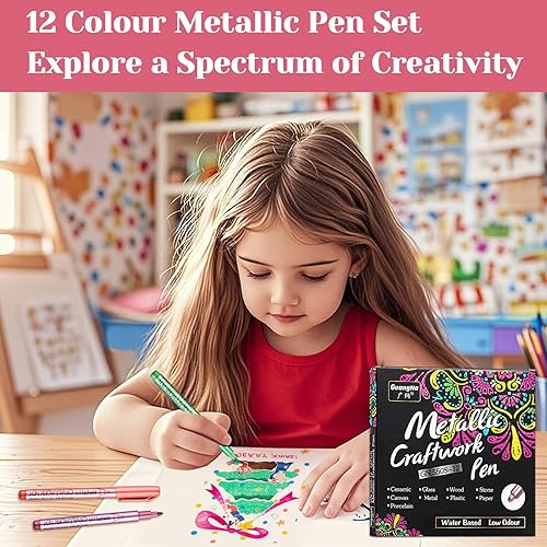 Funnasting Marqueurs Métalliques Feutres, 12 Couleurs Feutre Metallique pour Album Photo Scrapbooking Materiel, Stylo Feutre pour Porcelaine,La Peinture CéRamique, Verre, Pierre, DéCoration En Bois