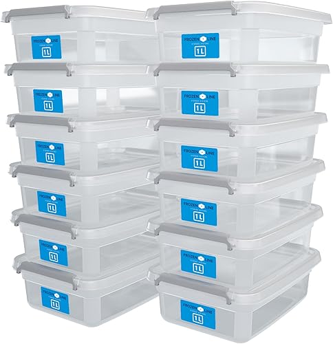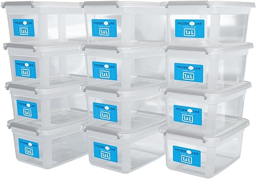 ATHLON TOOLS Lot de 12 boîtes de rangement de 2 l avec couvercle - Petites boîtes de rangement - 100 % neuves - Transparentes - Sans BPA - Boîtes empilables - Clips de fermeture gris - Presque