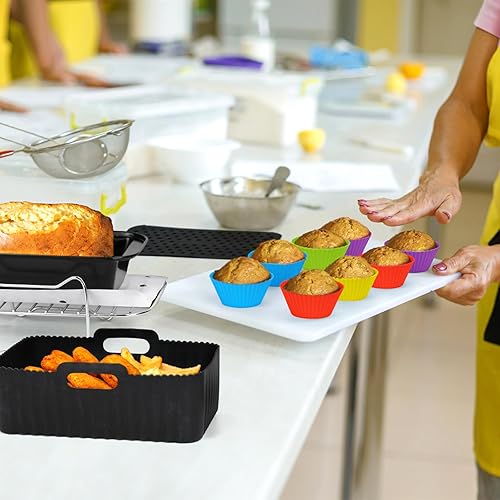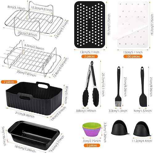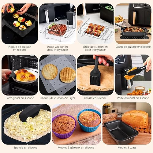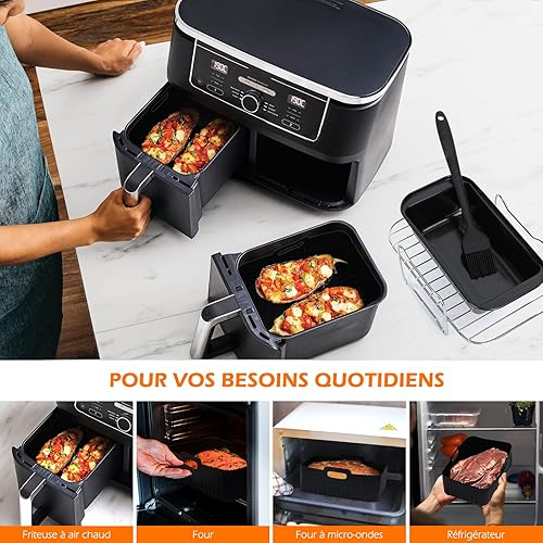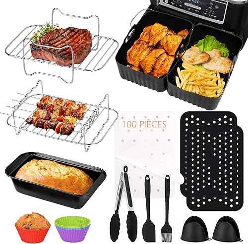 WIAZZLUK 18 Pièce Accessoires pour Friteuses à Air, pour Ninja Foodi AF400EU, AF300EU Double Zone Friteuse à Air, avec Moule Air Fryer, Plaque de Cuisson en Silicone, Grille Vapeur