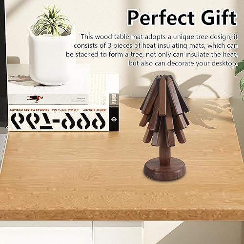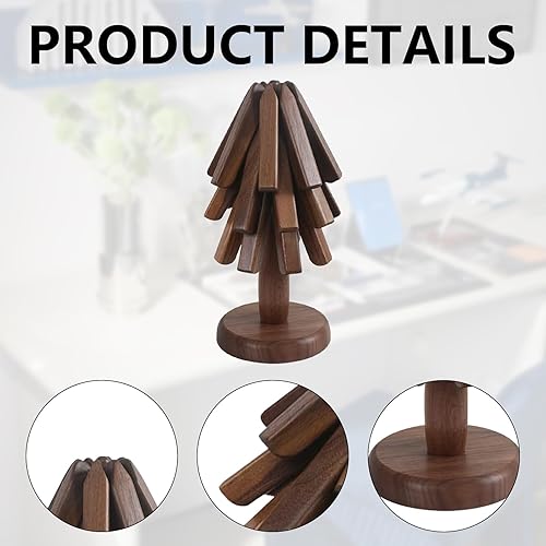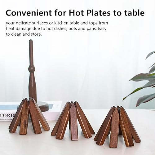 Dessous De Plat, 3 Niveaux en Forme d'arbre Dessous De Verre en Bois en Noyer Tapis Isolant en Forme d'arbre Sets De Table Pliables en Bois pour Plats Chauds Casseroles ThéIères Poêles