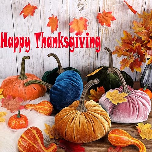 Aoklidil Citrouille décorative en velours fait à la main - Citrouille remplie super douce - Environ 15 cm - Décoration d'Halloween de Thanksgiving (PK)