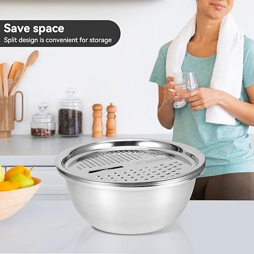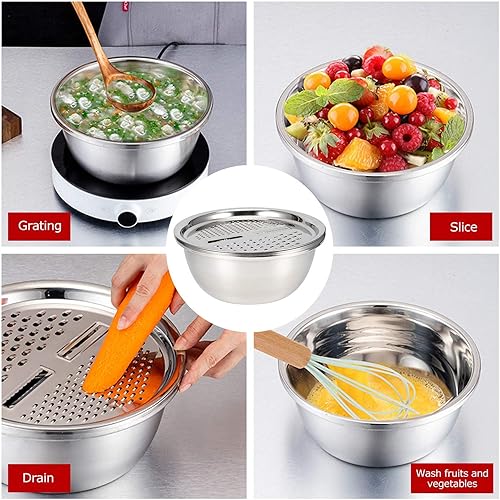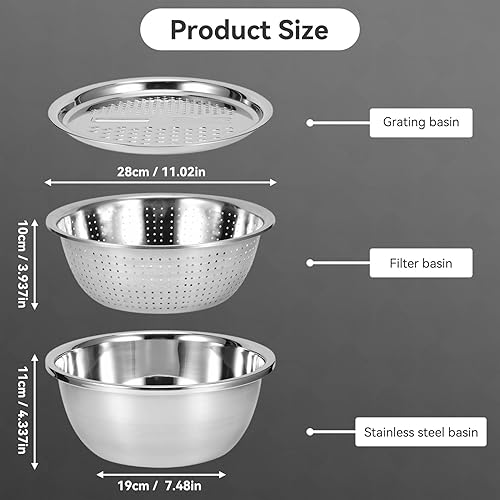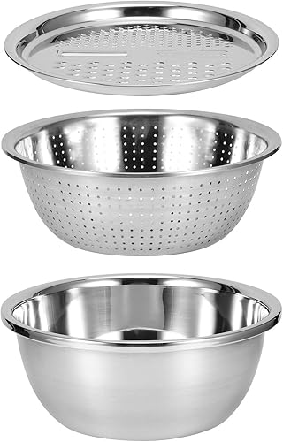 Passoire avec Bol Inox, Passoire À Egoutter En Acier Inoxydable, 3 en 1 Saladier et Passoire avec Râpe à Fromage Passoire De Cuisine pour Salade Légumes Fruits Riz Pâtes Lavage