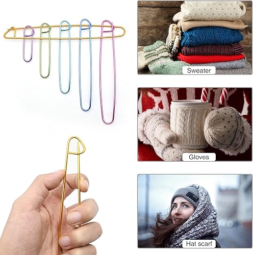 12Pcs Arrêt Maille en Alliage, Epingles à Nourrice Métal Coloré, 6 Couleurs 6 Tailles Aluminium Aiguilles à Tricoter Crochet, pour couvertures, écharpes, Artisanat à Tricoter Bricolage