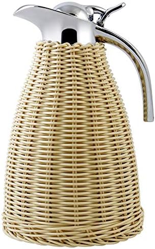 Carafe thermique en acier inoxydable de 1,5 l, carafe isotherme à double paroi, corps en rotin fait à la main, rétention de la chaleur et du froid pendant 20 heures