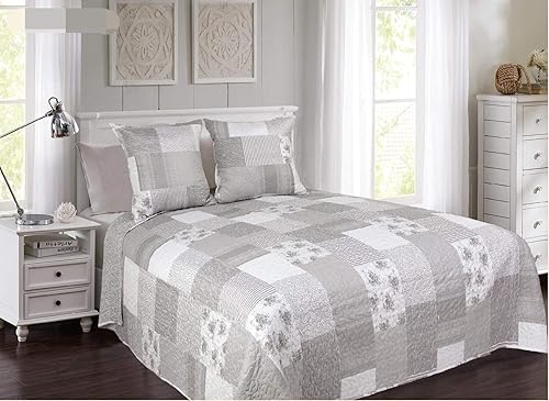 Générique Couvre lit Dessin imprimé 230X250cm avec Taies 65X65cm_boutis MJ 3 (Gris, 230_x_250_cm)