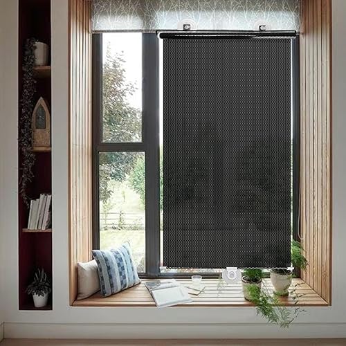 LWLWA Rideau Occultant sans Percage, PVC Store Enrouleur Occultant Noir, Rideau Petite Fenetre avec Transparent Ventouses, pour Salon, Chambre, Bureau (40 x 125 cm)