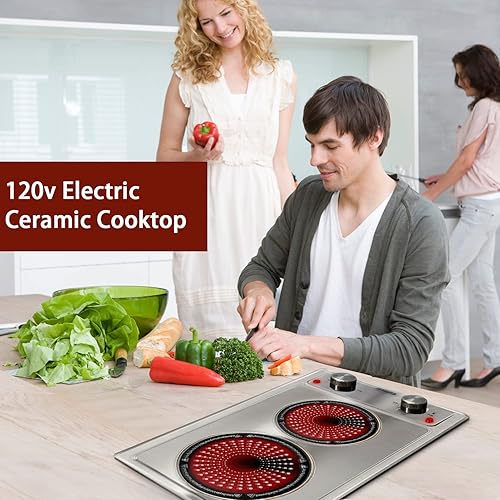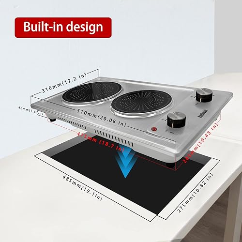 Plaque Vitrocéramique 2 Feux en Inox, 2600W, 220-240V, Kainear Plaque de Cuisson 2 feux en Acier Inoxydable, avec Bouton de Commande