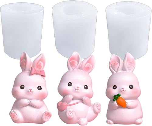 HyzaPhix 3PCS 3D Moulle Resine Epoxy Animaux Silicone Moulage Lapin Chocolat Forme Moule Fondant Candy Mold pour Fabrication Bougies, Savon ,Décoration Maison (Translucide)
