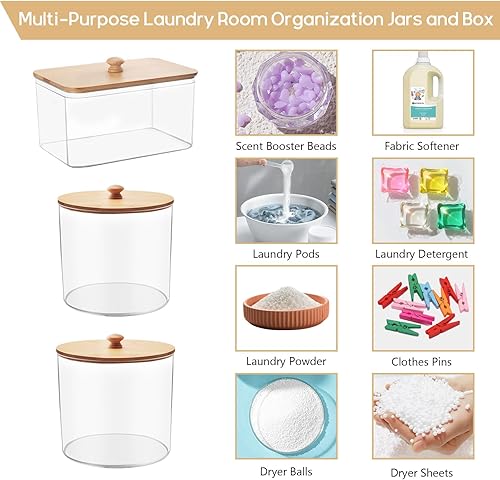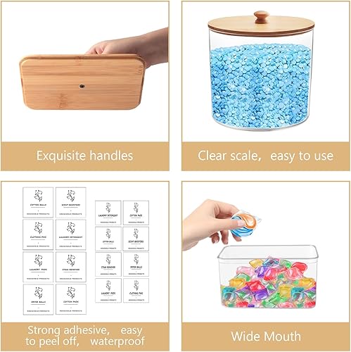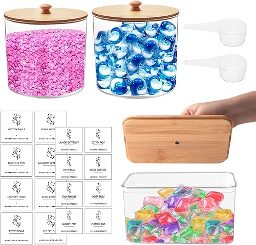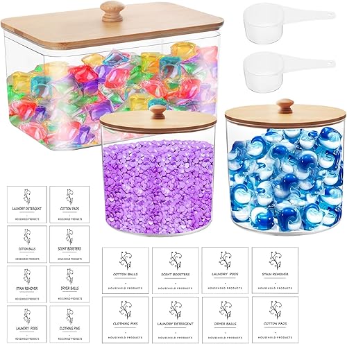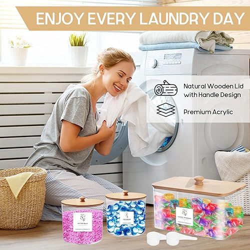 Lot de 3 Boîte à Détergent pour Rangement Lessive, Boîte à Détergent avec Étiquettes, Organisateur de Détergent avec 2 Cuillères, Boîte de Rangement pour Détergents pour Lessive et Capsules