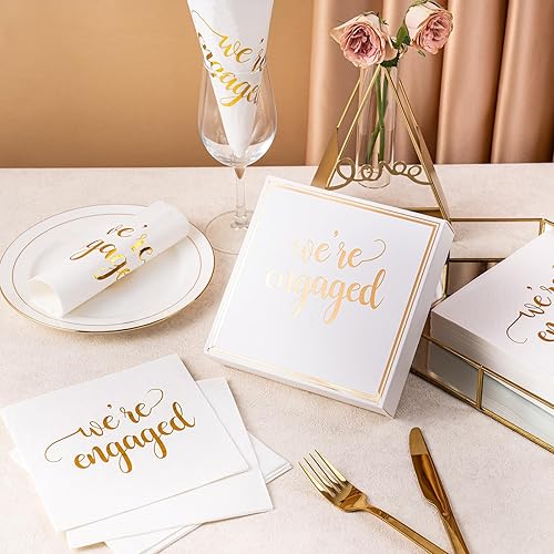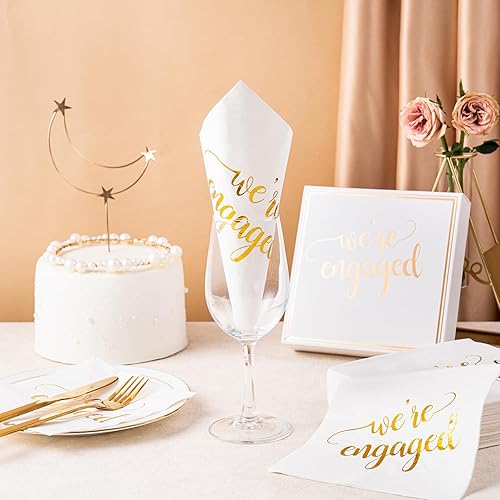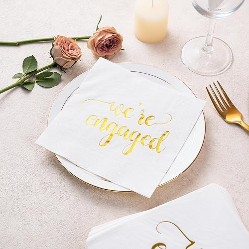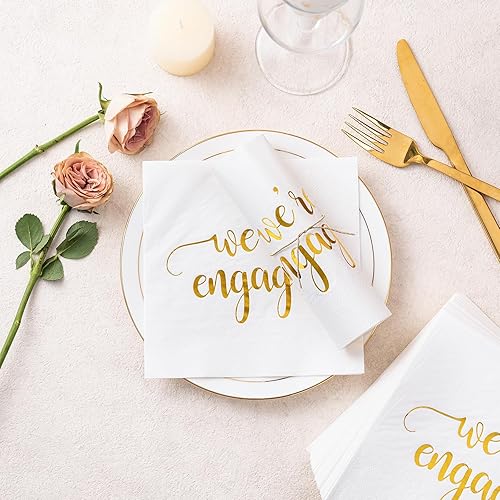 RUSPEPA 50 Pièces Serviettes Engagées - Serviette de Déjeuner en Papier Jetable à 3 Épais, Feuille d'Or Nous sommes Engagés - 16,5x16,5 cm