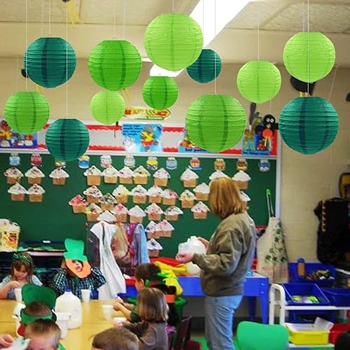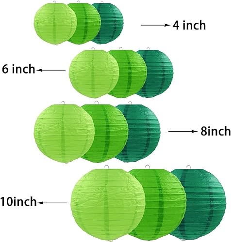 CC wonderland zone Lanterne en Papier Vert Décoration,Lot de 12 Lanternes Rondes en Papier pour Mariage, Anniversaire, Fête Prénatale, Mariage, Décoration de Jardin