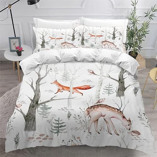Syhi Qlty Parure de Lit 90x190 Enfant Animaux De La ForêT Housse de Couette 1 Personne Microfibre Renard Cerf Ensemble de Literie Fermeture Éclair avec Taie d'oreiller 65x65cm JH19